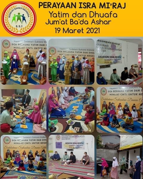 Alhamdulillah Yayasan Sedekah Sukses Indonesia memaknai Isra’ Mi’raj dengan bermunajat, berdzikir memohon ampunan kepada ALLOH Subhanahu Wata’ala bersama Putra Putri Yayasan Sedekah Sukses Indonesia dengan penuh kesederhanaan menauladani sifat Baginda Rosululloh SAW.